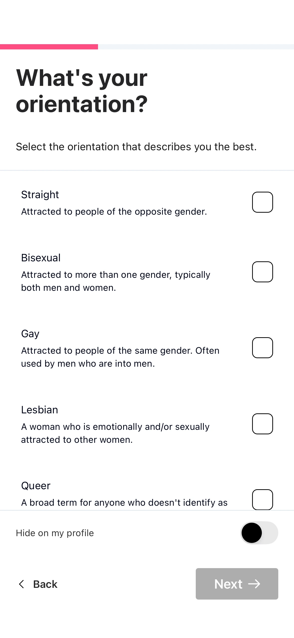 The filtering system is more detailed than anything we've seen, you can search by identity, dynamic, mood, interests, and even physical traits like body type, hair color or eye color.